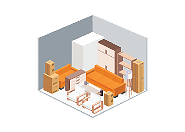 (Door height increases to 8’6″ and door width to 10′) Fits the contents of two full bedrooms, including several small to medium sized boxes, and items such as mattress sets, sofas, chests of drawers, bookcases, and desks.